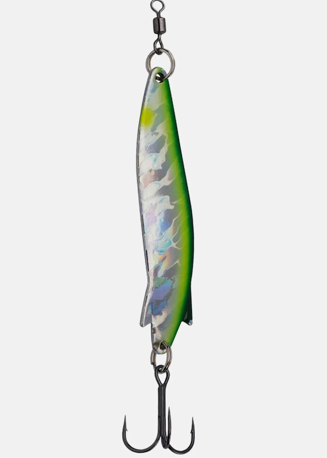 Ögla för fiskelinan och en vass trekrok undertill för ett lyckat fiske.