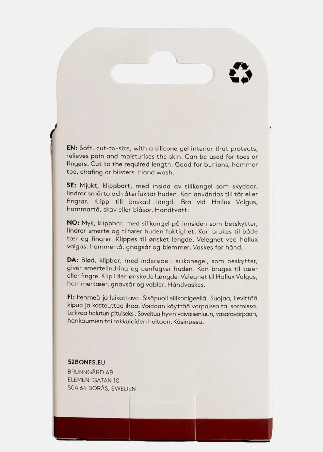 Toe Protect Tube från 52 Bones är ett mjukt, tubformat tå- och fingerskydd med insida av silikon som effektivt lindrar smärta och återfuktar huden. Perfekt för att avlasta besvär vid Hallux Valgus, hammartå, liktorn, skav eller blåsor. Tack vare det följsamma materialet kan skyddet enkelt anpassas till önskad längd för optimal komfort.