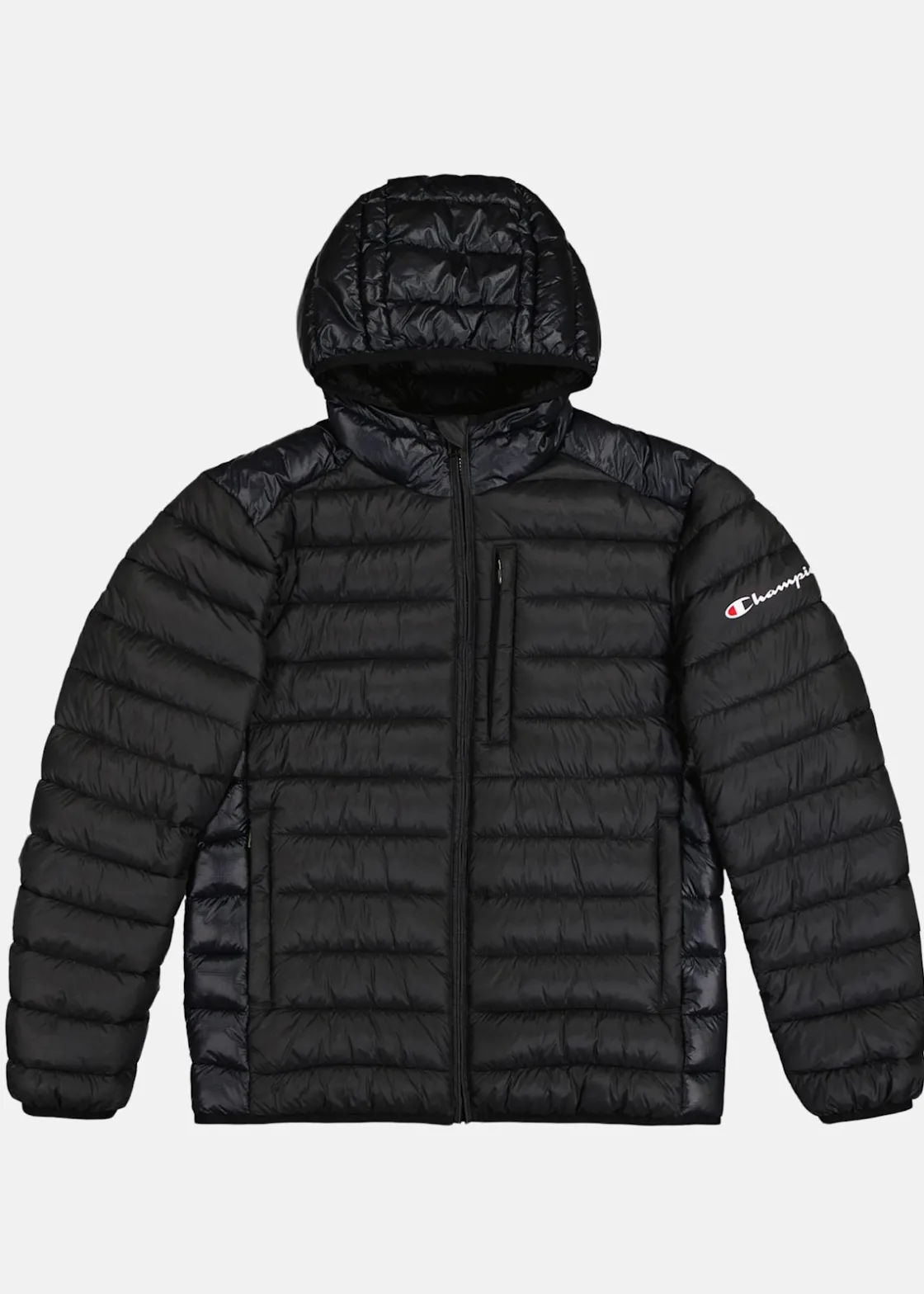 Champion Hooded Jacket erbjuder optimal komfort med sin vadderade och mjuka design, kompletterad med elastiska muddar och en fast huva. Praktiska sidofickor och en bröstficka med dragkedja gör den både funktionell och stilren. Med en diskret logga på ärmen och en hellång dragkedja med hakskydd, kombineras elegans och enkelhet i ett stilrent plagg.