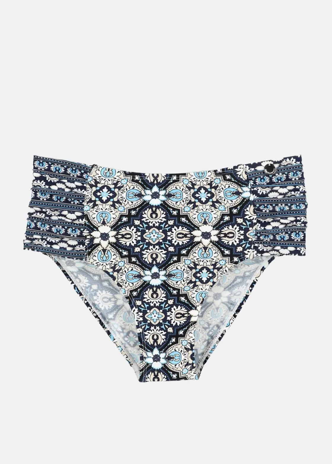 Snabbtorkande material och bekväm passform. Mönstrad design och veckade detaljer på sidan.