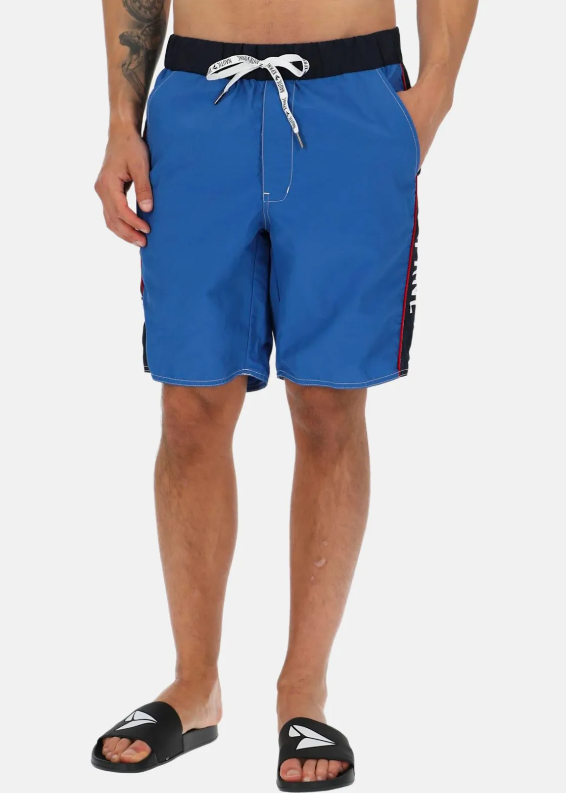 Snabbtorkande badshorts med normal passform och justerbar dragsko i midjan. Två sidofickor och en ficka baktill.