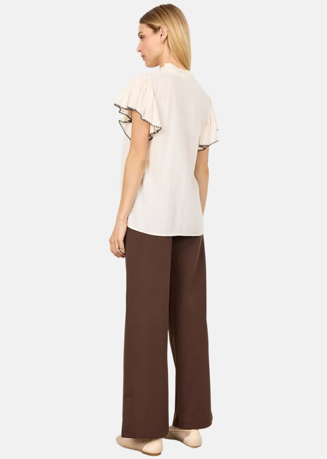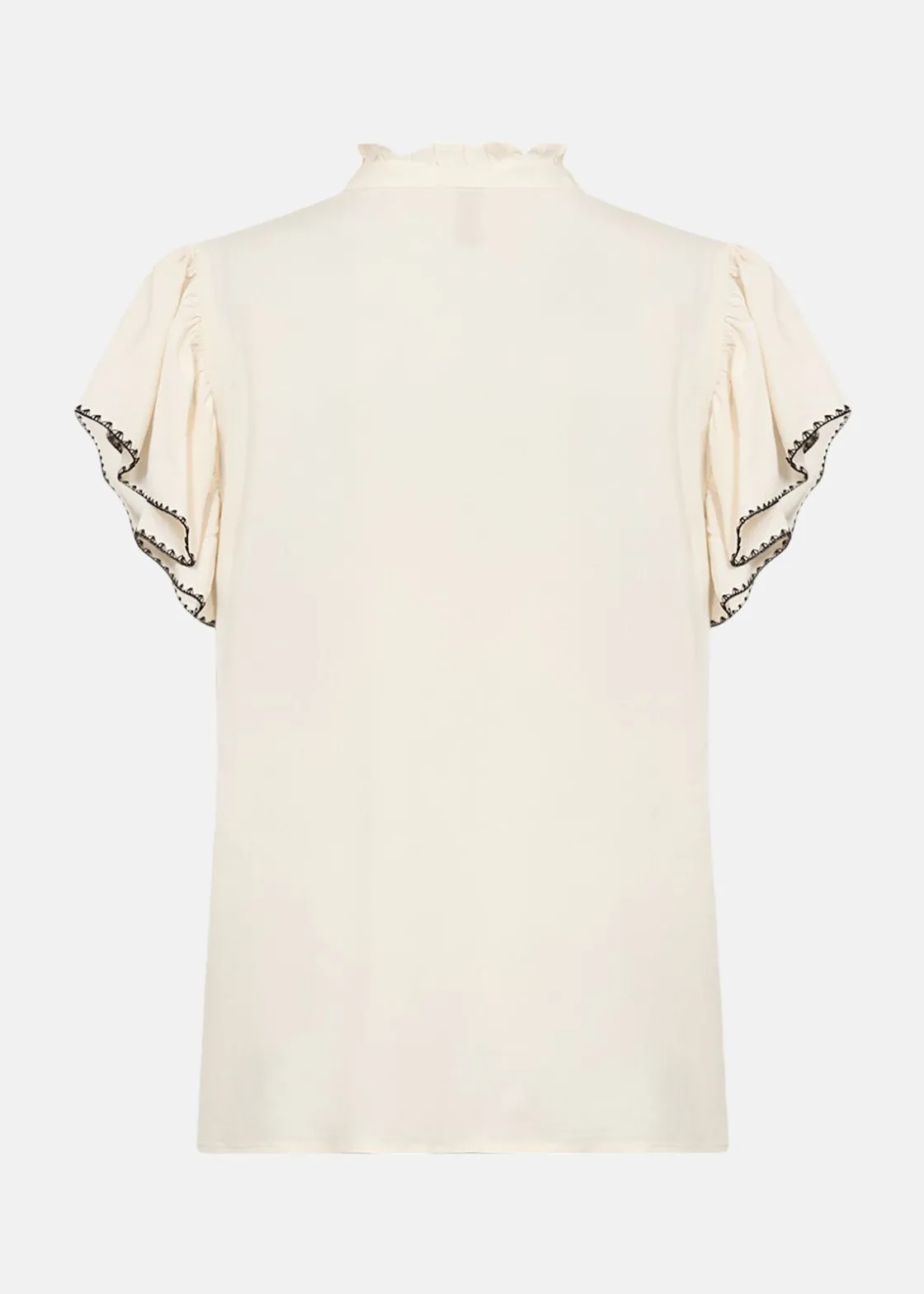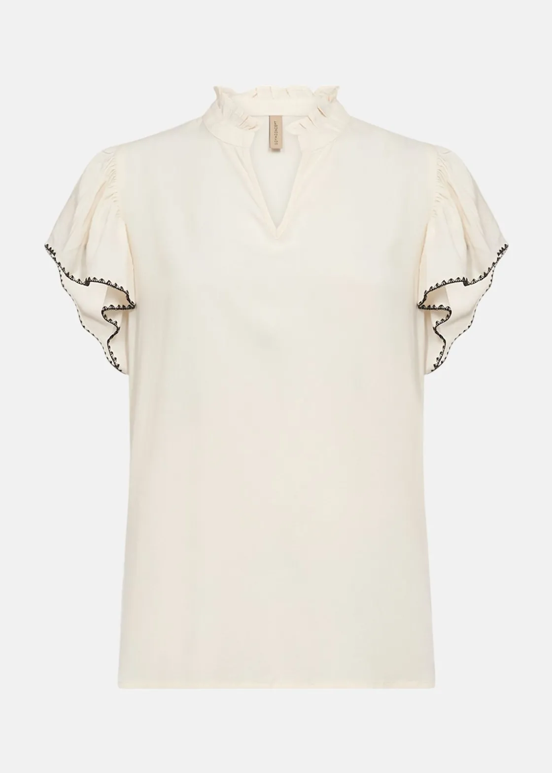 SC-RADIA 215 Blouse är en elegant och hållbar blus tillverkad av LENZING ECOVERO viskos. Den har en sofistikerad hög halskrage med volangdetaljer som ger en feminin touch. Cap-ärmarna med fin kant och V-ringningen kompletterar designen, vilket gör den perfekt för både vardag och festliga tillfällen. Materialet, 100% viskos, säkerställer komfort och stil.