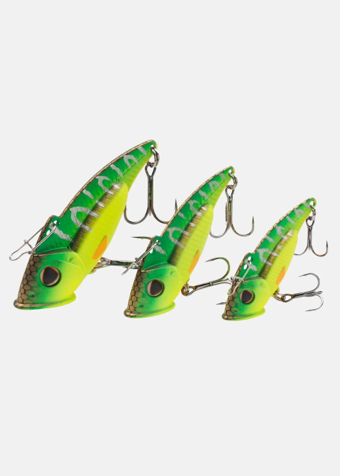Skimrande, effektivt bete med två trekrokar och ögla för fiskelinan.