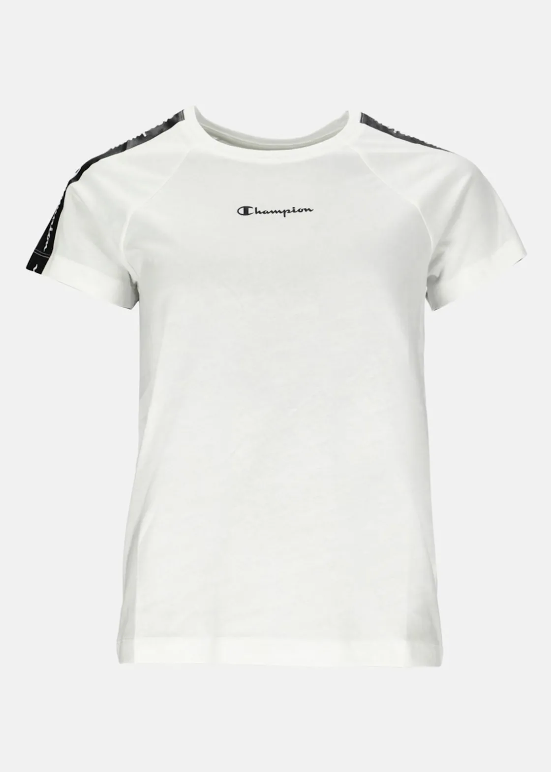Legacy Crewneck Stripe t-shirt från Champion. Klassiska ränder längs ärmarna. Kortärmad tröja med logotryck. Klassisk design med en normal passform.