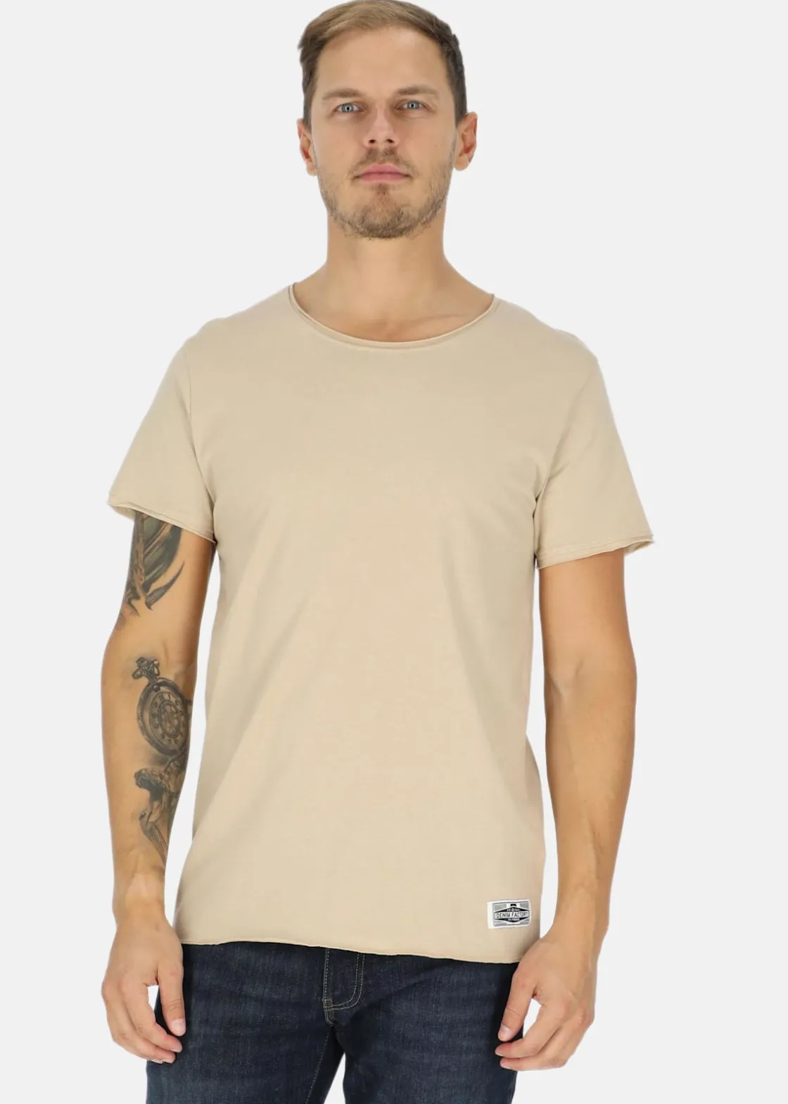 T-shirt med en unik rå kant, vilket ger den en trendig och lätt slitstark känsla. Med sin normala passform passar TDF Tee perfekt till alla typer av tillfällen, vare sig det är till vardags eller till en kväll ute. Denna kvalitetst-shirt är ett måste i varje garderob, en klassisk bas som kan matchas enkelt med alla stilar. Skäm bort dig själv med Denim Factorys klassiska t-shirt.