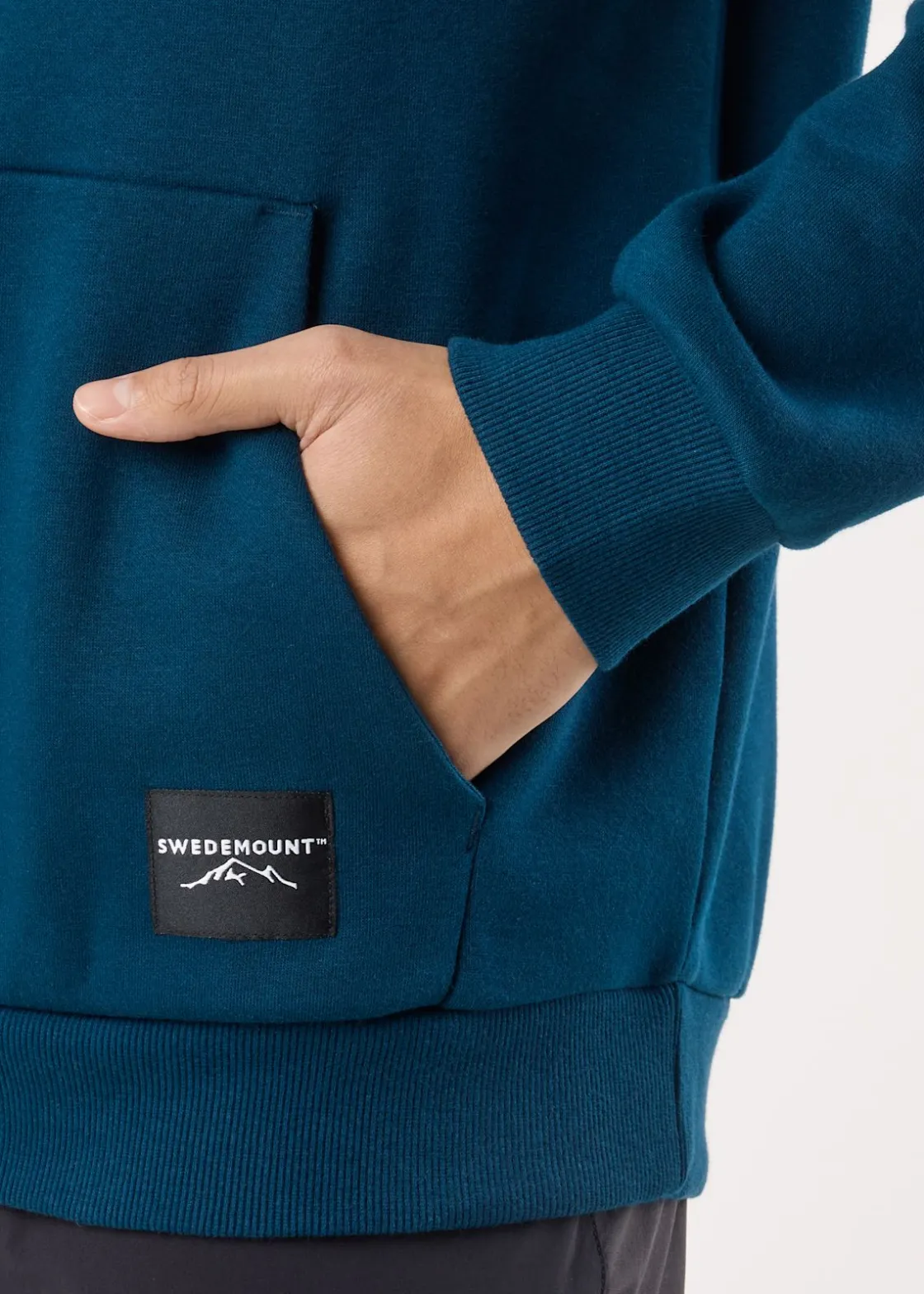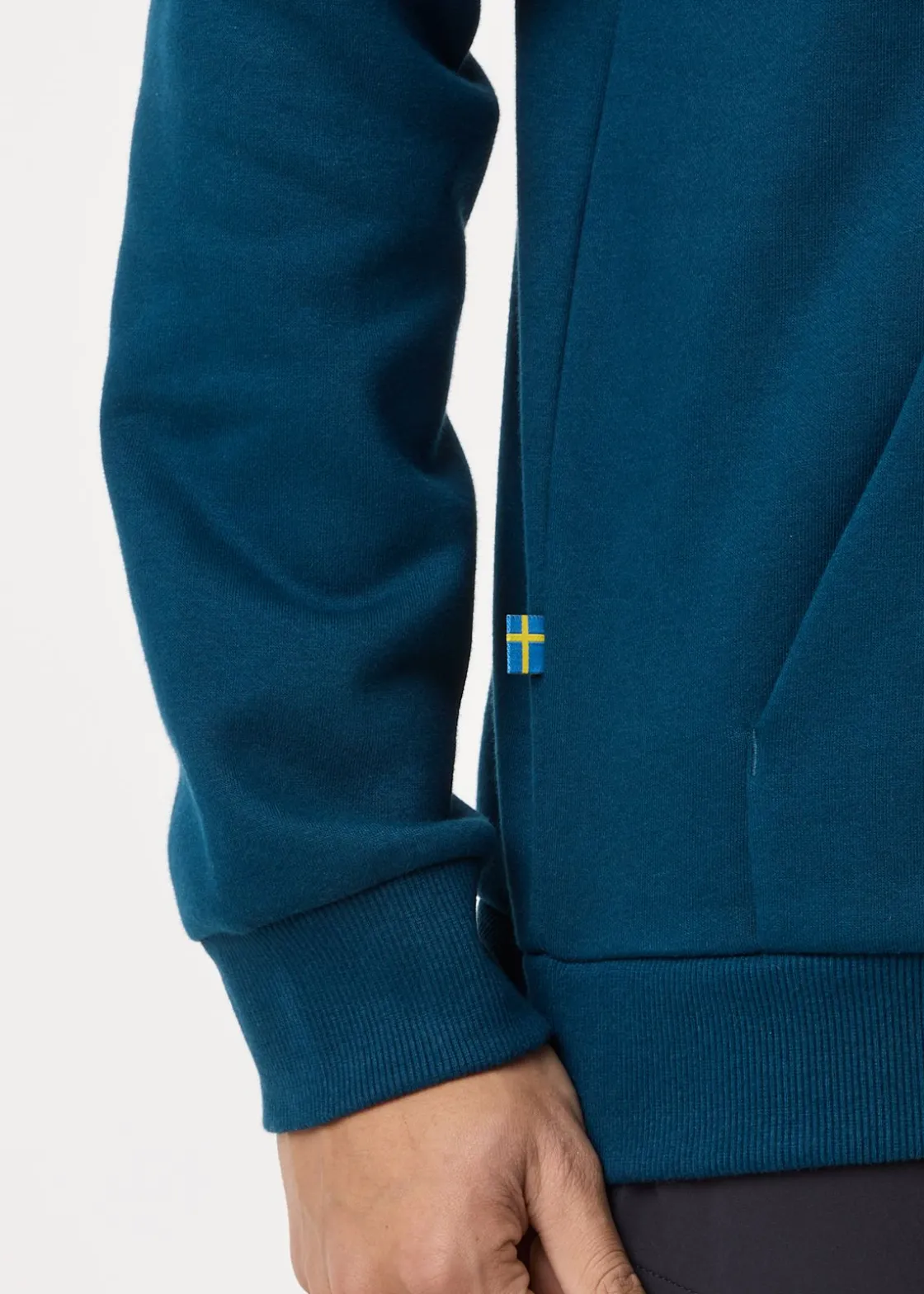 Mjuk tröja med justerbar huva och en stor ficka fram.