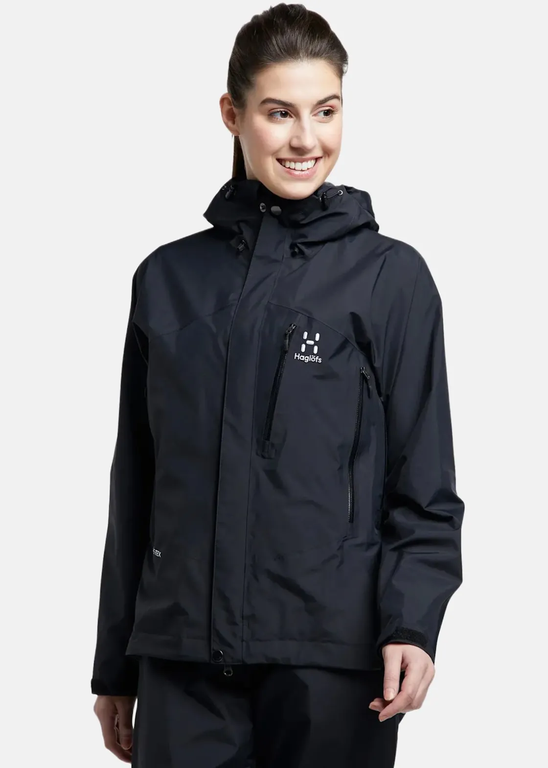 Jacka med en hög krage med hakskydd och justerbar huva. Tvåvägsdragkedja och vindslå. Ventilationspaneler längsmed sidorna och justerbara ärmslut. Fukttransporterande, vind- och vattentätt material och skön passform perfekt för alpin skidåkning och för vandring och vardagsliv.
