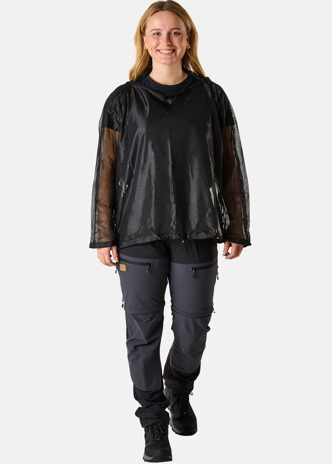 Kinetic Mosquito Jacket erbjuder pålitligt skydd mot olika insekter med sitt ultrafina, hexagonala nätmönster. Det gröna nylonmaterialet säkerställer hållbarhet samtidigt som det bibehåller synlighet, vilket gör det lämpligt för utomhusaktiviteter.