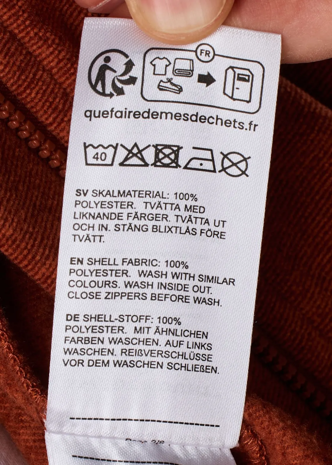 Jacka i polyester med randeffekt.