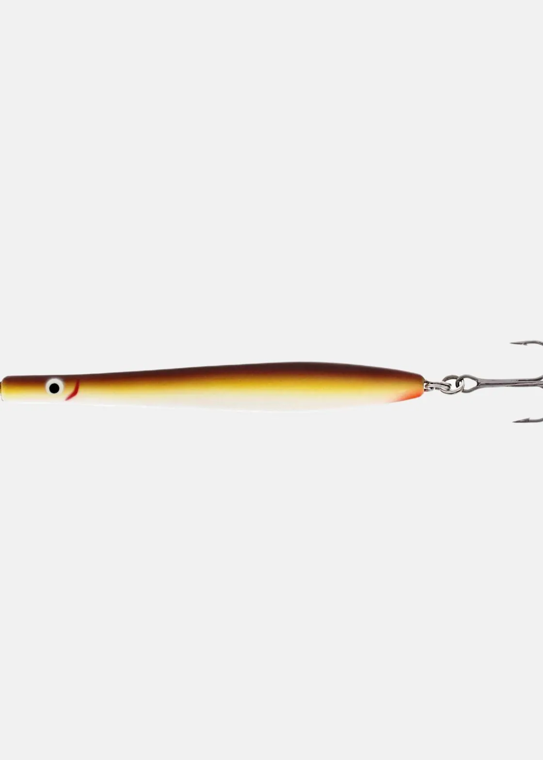 Ögla för fiskelinan och vass trekrok undertill för ett lyckat fiske.