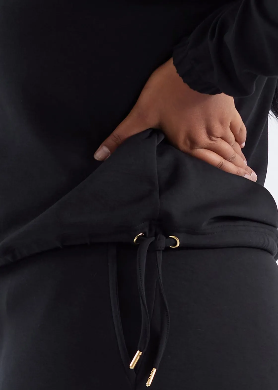 - Justerbar midja med ett knytband