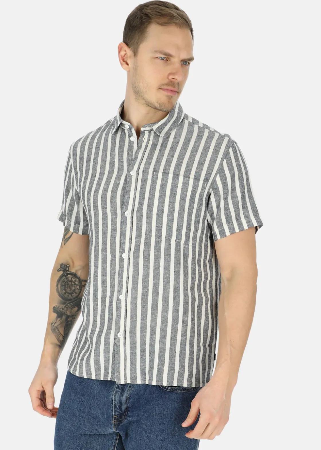 Kortärmad skjorta från Solid tillverkad i ett bekvämt, lätt material för att passa till de varmaste dagarna. Med genomgående knappstängningen, korta ärmarna och bröstfickan gör den till ett mångsidigt och elegant val för alla tillfällen. Passar utmärkt till både vardags och fest!