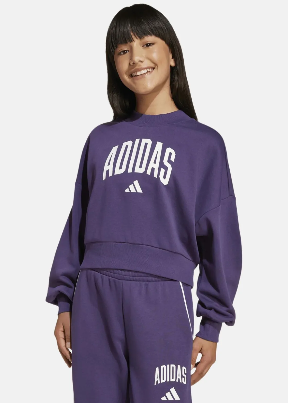 Seasonals Essentials Collegiate Typography Crew för juniorer erbjuder en avslappnad passform med en stilren design. Den moderna logotypen hyllar adidas sportarv och ger en ungdomlig känsla. Tillverkad av 70% bomull och 30% återvunnen polyester, kombinerar denna sweatshirt komfort och hållbarhet. Perfekt för att mixa och matcha i olika stilar.