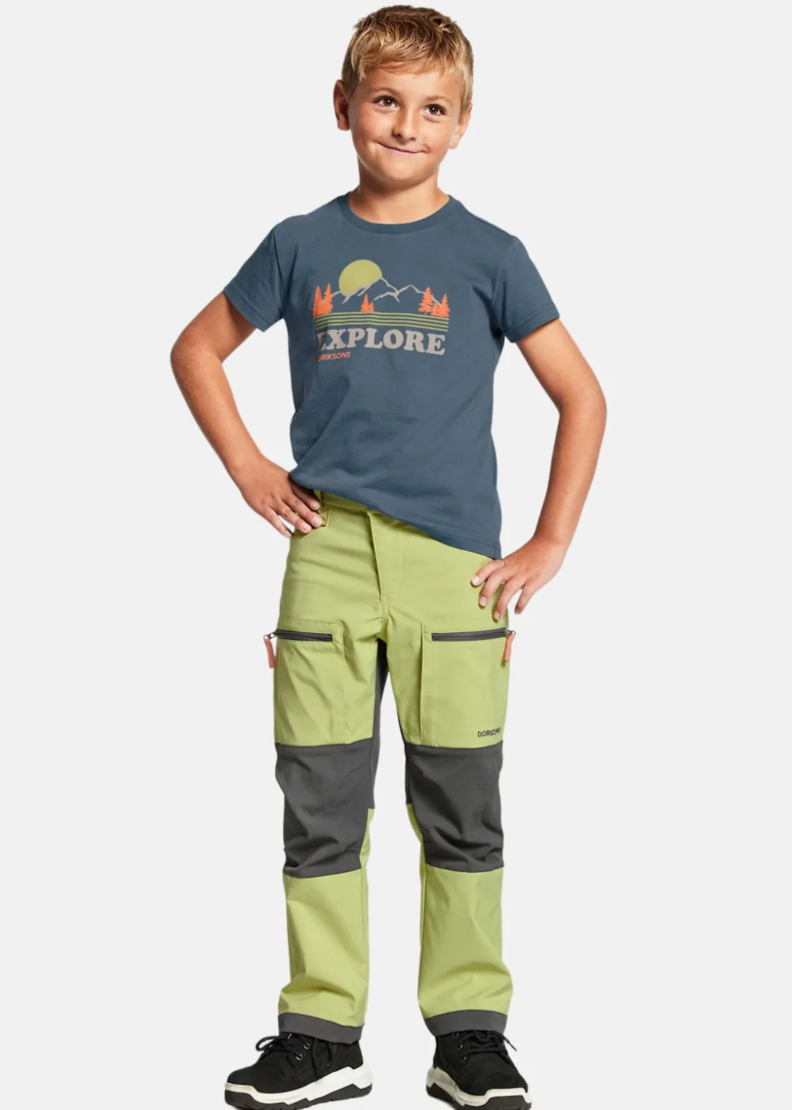 Vindtäta och vattenavvisande byxor ifrån Didriksons perfekt för att hålla de små bekväma utomhus- oavsett väder. Slitstark förstärkning på knä och baktill och två lårfickor med dragkedja. Stretchigt material och justerbar midja och benslut för bästa passform. Perfekt för utomhusaktiviteter! PFC-fri vattenavvisning.