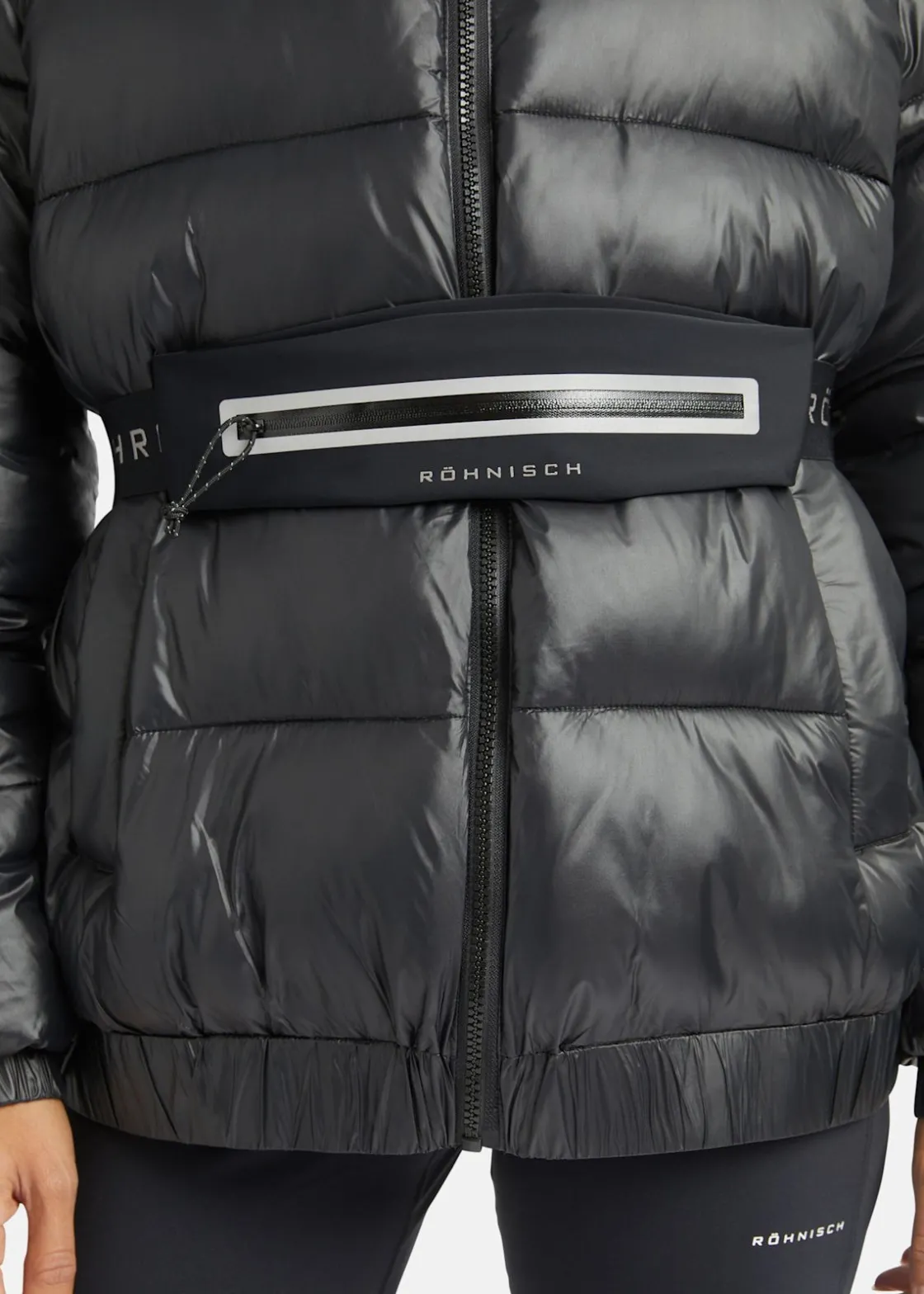 Bältet för löpning är tillverkat av hållbart återvunnet material och erbjuder en justerbar passform för optimal komfort. Med en ficka utrustad med vattenavvisande dragkedja och reflextryck, är det perfekt för säker förvaring av små föremål under löprundan. Materialet består av 75% polyester och 25% elastan, vilket ger både hållbarhet och flexibilitet.