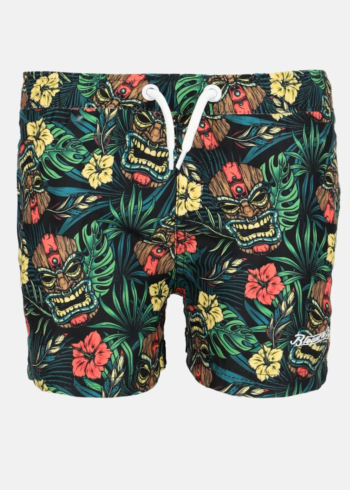 Unik badbyxa från Blount and Pool. Badbyxan har en elastisk midja med snörning för bästa passform och två öppna sidofickor med en stängbar bakficka.