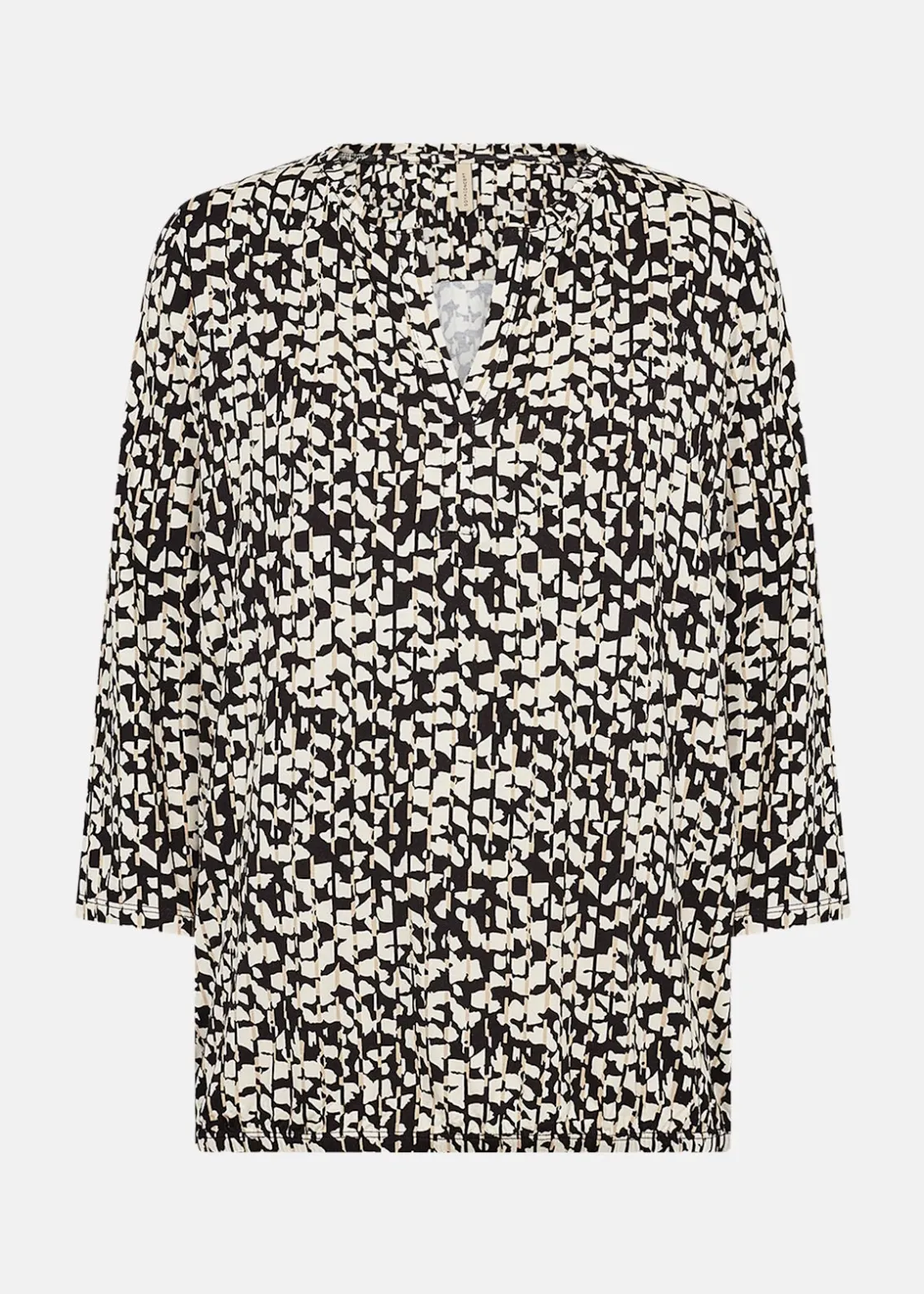 Denna blus erbjuder en stilren och bekväm design med sin avslappnade passform och V-ringning. Den halv långa ärmen och elastiska fållen ger en smickrande silhuett. Perfekt att kombinera med skräddarsydda byxor eller kjolar för en elegant och avslappnad look. Tillverkad av 93% Lyocell och 7% Elastan för optimal komfort.
