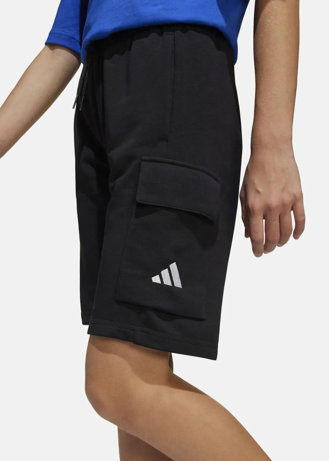 Dessa cargoshorts för juniorer kombinerar komfort och funktionalitet med sitt mjuka sweatshirttyg och avslappnade passform. Perfekta för både avslappning och äventyr, erbjuder de flera fickor för enkel förvaring av mobil och nycklar. Tillverkade av en blandning av återvunna och förnybara material, bidrar de till att minska avfall och beroende av ändliga resurser.