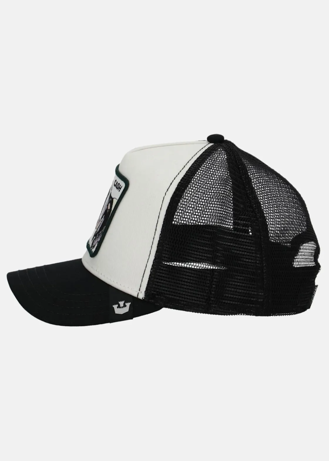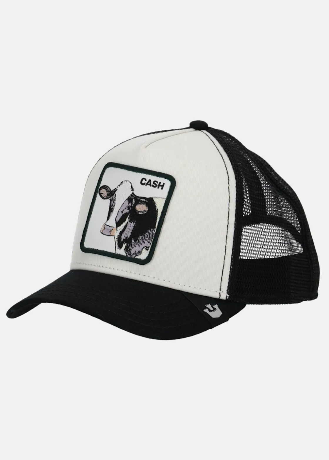 Här har vi en stilfull trucker-keps från Goorin Bros med meshtyg baktill. Den har en karakteristisk fyrkantig patch med en ko framträdande på framsidan, vilket ger en unik och rolig design. Kepsen kommer i onesize och har en justerbar 4-snap-in-rem, vilket innebär att den passar huvudstorlekar från 55 cm till 61 cm, med en medelstorlek på 58 cm. För extra komfort har den också ett bomullssvettband fastsytt på insidan och är tillverkad i en hållbar polyesterblandning. En perfekt accessoar för att ge din outfit både stil och humor.
