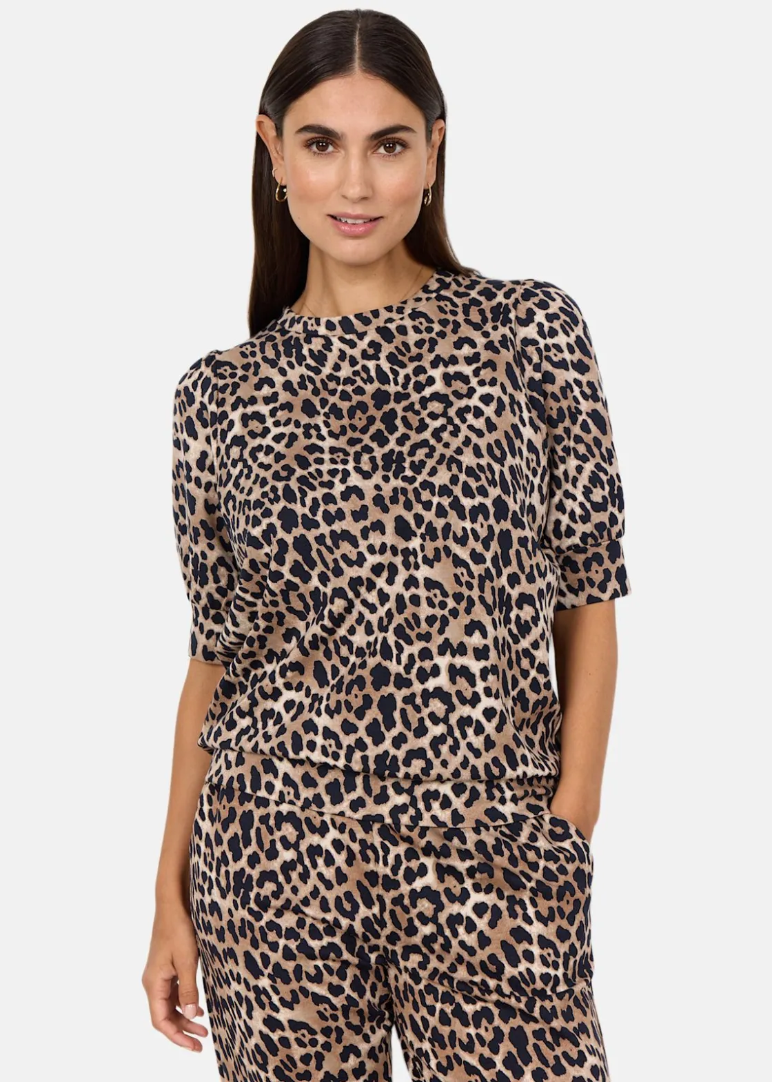 SC-OPHIA 2 är en blus med avslappnad passform och korta ärmar. Den har ett heltäckande leopardmönster som ger en modern touch. Perfekt att kombinera med klassiska byxor eller en kjol för en stilren look. Skötselråd inkluderar 30°C maskintvätt och strykning med låg temperatur.
