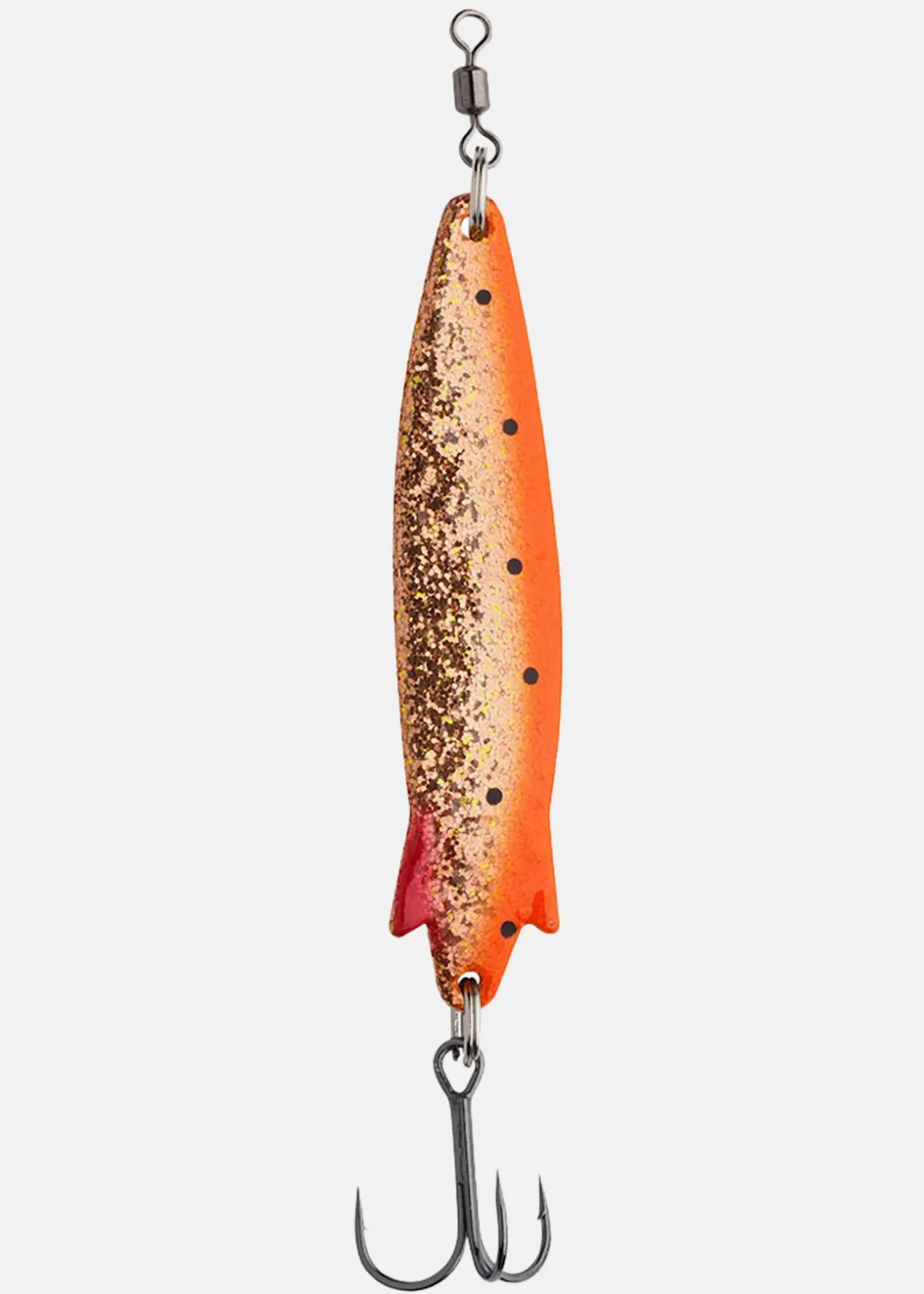 Litet fiskedrag med en ögla för fiskelinan och trekrok undertill.