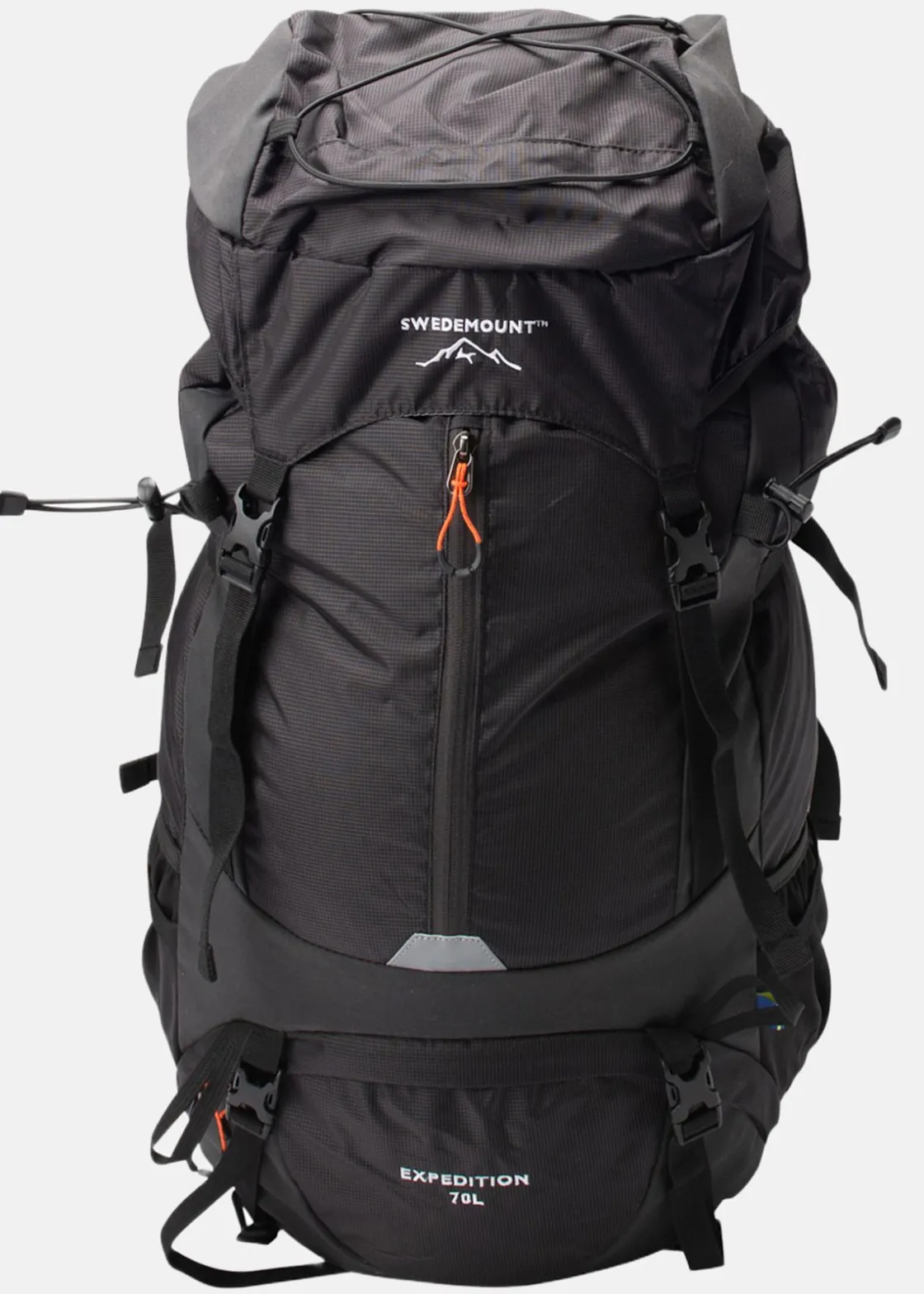 Expedition Backpack är en vandringsryggsäck från Swedemount med flera smarta funktioner för att göra din vandring så bra för dig som möjligt. Fack i botten som du kan nå från både utsidan där den stängs med dragkedja eller i botten inifrån som försluts med dragsko för ex; sovsäck eller skor. Ett stort packning utrymme med öppning upptill som stängs med dragsko. Med en framficka och en ficka på locket kommer du enkelt åt dina små saker under turen. Två stretchiga sidofickor med justerbara remmar runt om passar prefekt för vattenflaska eller kanske dina vandringsstavar. Justerbara axelremmar med bröstspänne du kan anpassa efter dig själv. Vadderat höftbälte med små fickor på som öppnas och stängs med dragkedja, du kan enkelt justera bältet med remmarna. För att inte bli för varm mot kroppen när du bär ryggsäcken har den ett Air flow system så att luft och fukt från kroppen kan transporteras fritt mellan säcken och ryggen då det endast är ett meshtyg som ligger mot kroppen.