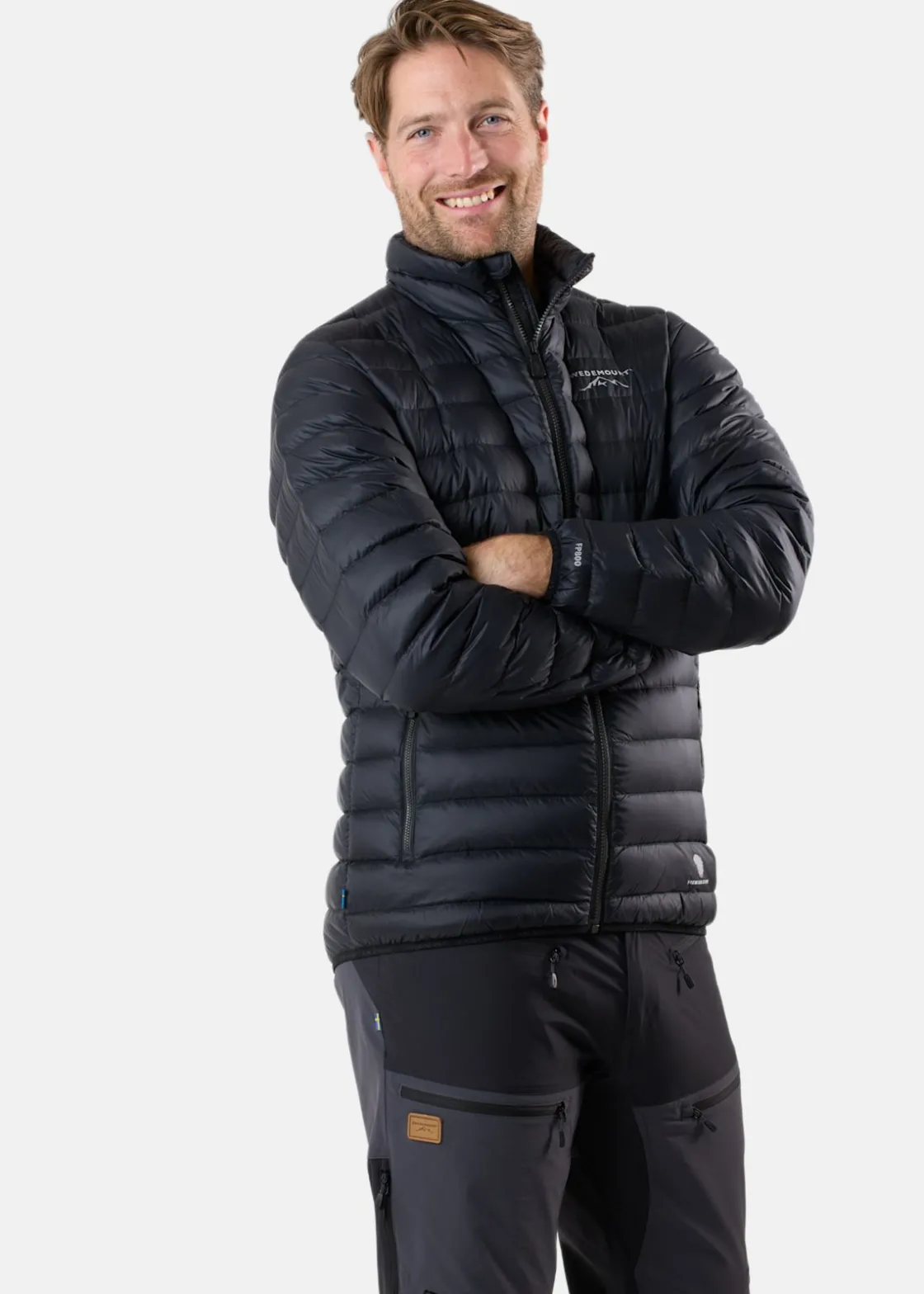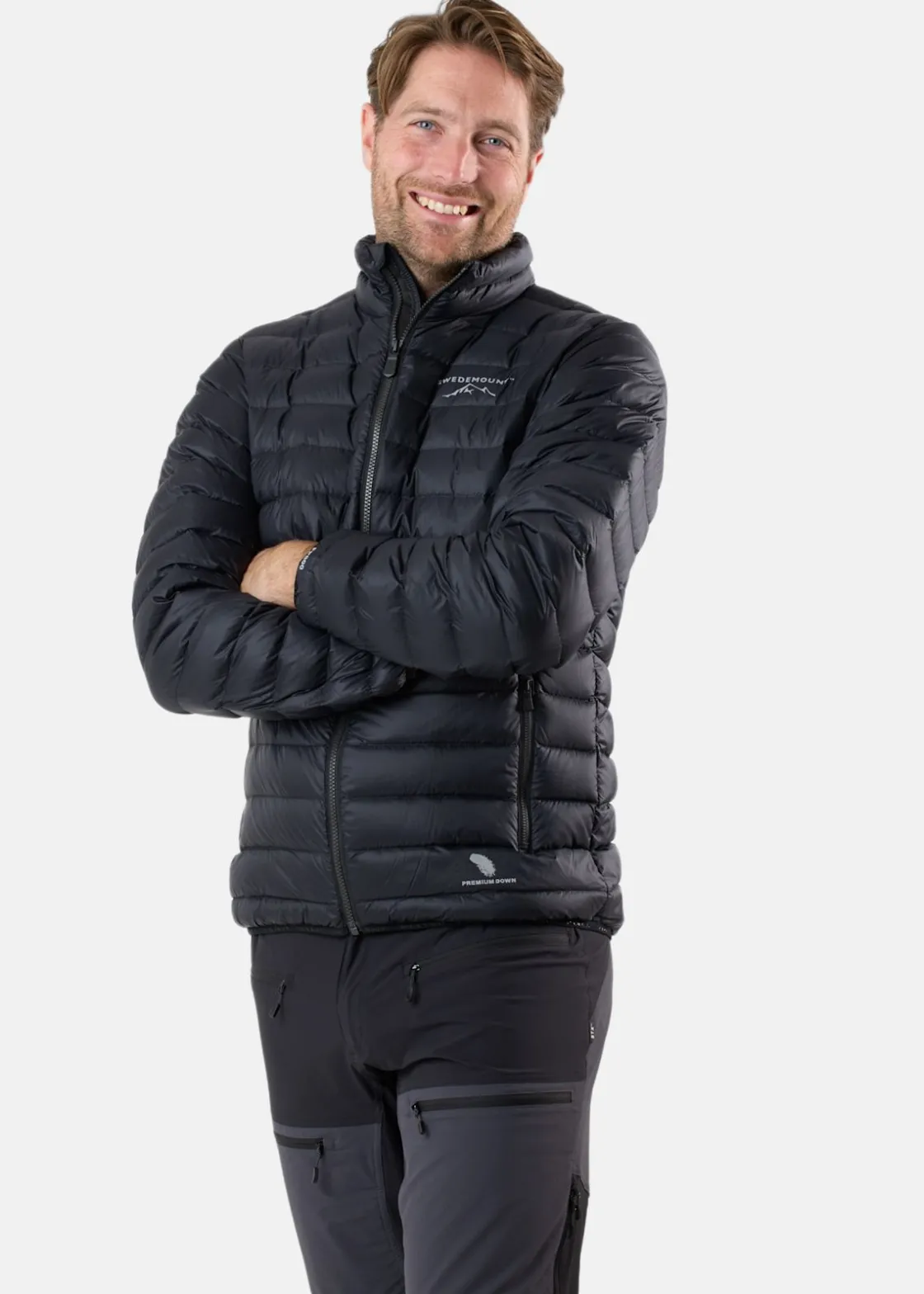 Himalaya Down Jacket är tillverkad av 100% ripstop nylonväv som är extremt slitstark trots sin lätta vikt. Rip-stop är en väv som är förstärkt med invävda trådar i ett rutmönster, vilket ökar dess hållbarhet och förhindrar att jackan rispas upp vid skador. Tyget har även behandlats med en PFC-fri DWR-behandling för att avvisa vatten. Jackan är isolerad med mycket dun som är RDS-certifierad med en fyllningsgrad på 800. Jackan har YKK Vislon-dragkedjor fram och på fickorna, reflekterande Swedemount-logotyper fram och bak. Med elastiskt kantband vid ärmsluten och nertill på jackan får du en bekväm passform för att inte få in vinden. Dessutom medföljer en praktisk packpåse för enkel transport som även kan användas som huvudkudde på dina resor. Himalaya down Jacket finns både med och utan huva.