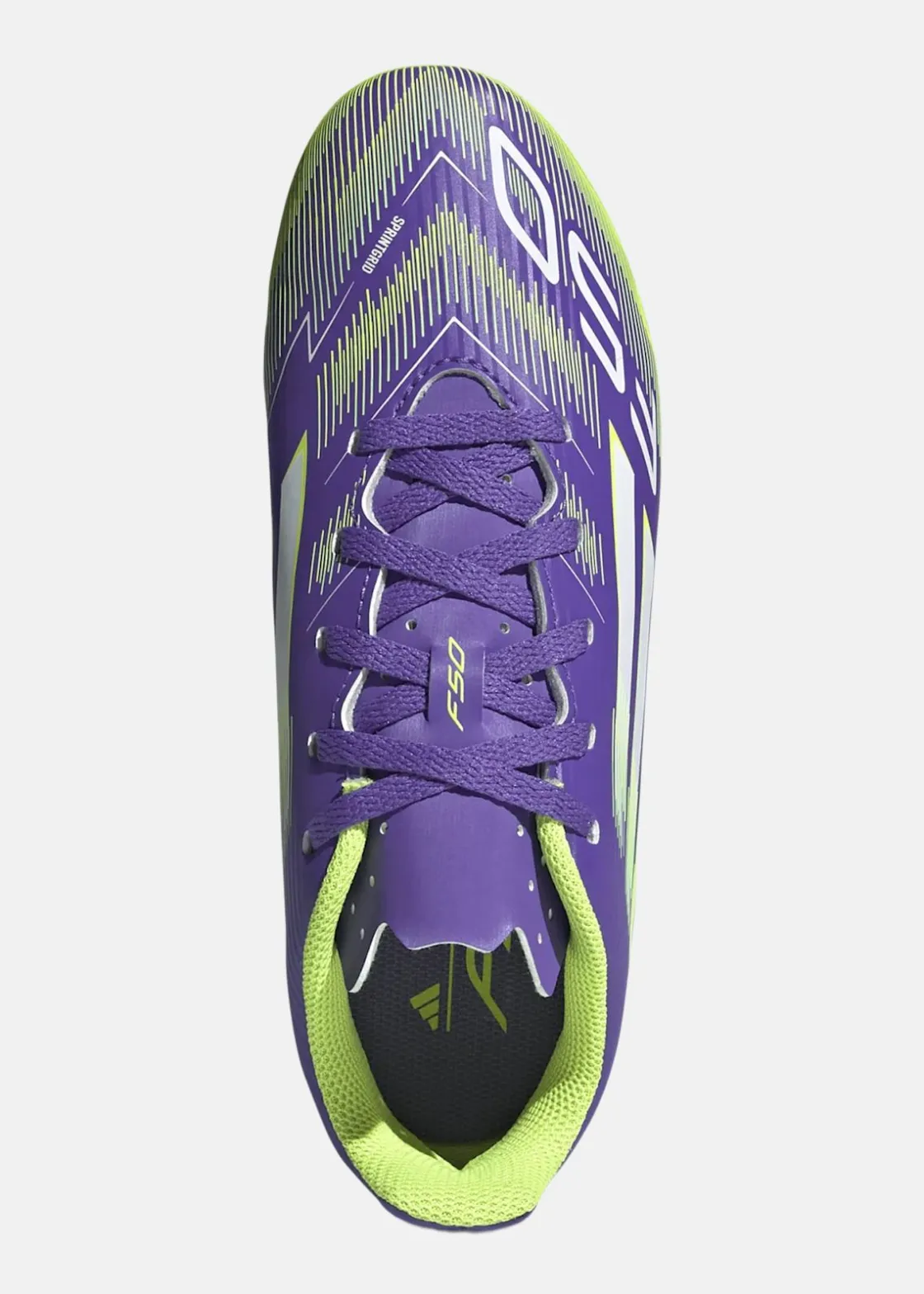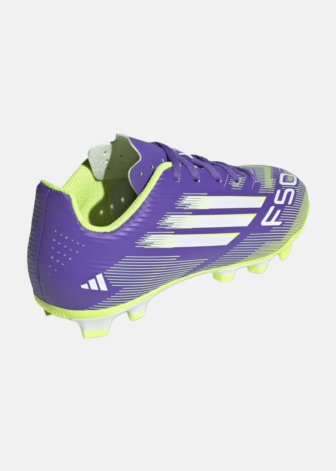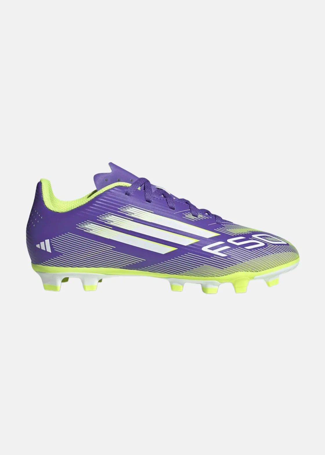 adidas F50-skorna är designade för juniorer som vill visa sin snabbhet på fotbollsplanen. Med en lättviktig syntetisk ovandel och perforerad plös erbjuder de komfort och stöd under spelet. Den mönstrade gummiyttersulan ger optimalt grepp på både fast underlag och konstgräs, vilket gör dem perfekta för snabba rörelser och skarpa vändningar.