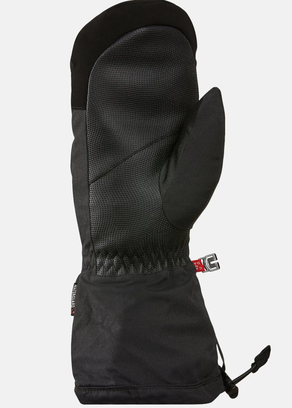 Vind- och vattenavvisande tumvantar med justerbara handledsremmar och dragskor på muddarna.