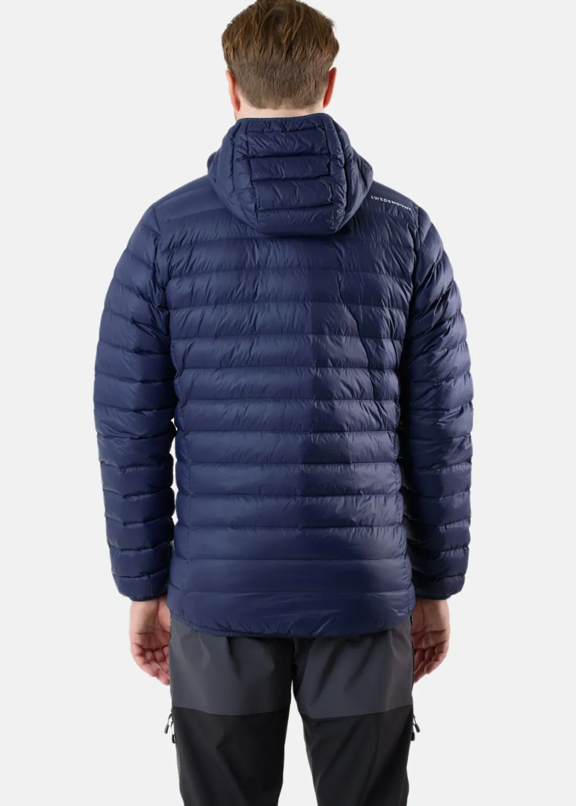 Himalaya Hood Down Jacket är tillverkad av 100% ripstop nylonväv som är extremt slitstark trots sin lätta vikt. Ripstop är en väv som är förstärkt med invävda trådar i ett rutmönster, vilket ökar dess hållbarhet och förhindrar att jackan rispas upp vid skador. Tyget har även behandlats med en PFC-fri DWR-behandling för att avvisa vatten. Jackan är isolerad med mycket dun som är RDS-certifierad med en fyllningsgrad på 800. Jackan har YKK Vislon-dragkedjor fram och på fickorna, reflekterande Swedemount-logotyper fram och bak. Med elastiskt kantband vid ärmsluten och nertill på jackan får du en bekväm passform för att inte få in vinden. Dessutom medföljer en praktisk packpåse för enkel transport som även kan användas som huvudkudde på dina resor. Himalaya down Jacket finns både med och utan huva.