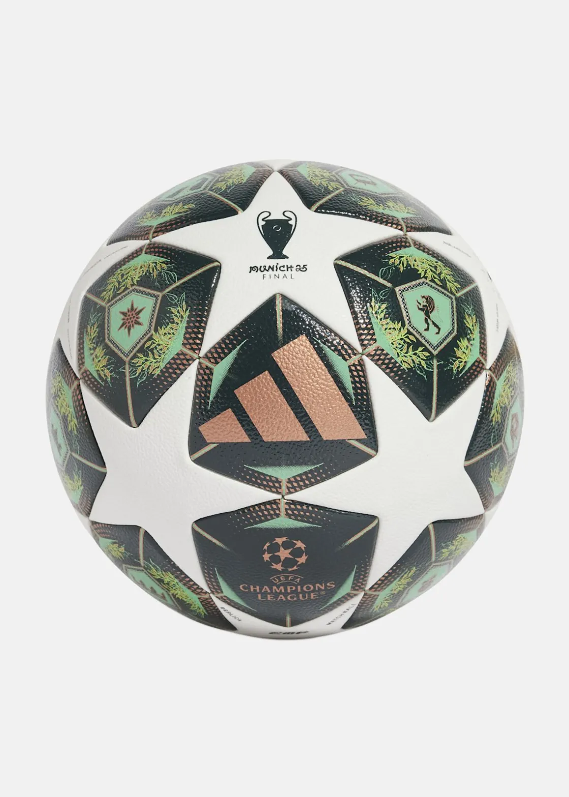 Denna boll kombinerar stil och funktionalitet, inspirerad av Münchens ikoniska arkitektur och UEFA Champions League. Med en sömlös yta och hållbar blåsa, erbjuder den optimal spelupplevelse och långvarig prestanda.