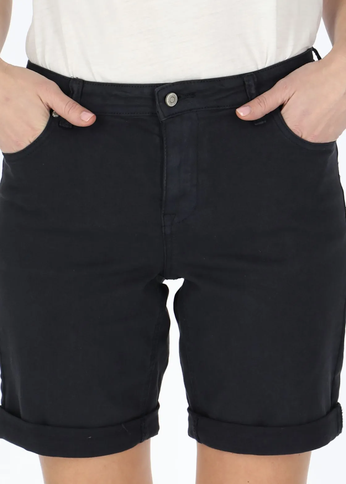 Stretchiga shorts från Seaside med skön passform och stilren design. Klassisk gylf med dragkedja och knapp upptill, bälteshällor i midjan och fyra rymliga fickor. Nederkanten går att ha uppvikt eller nedvikt, allt efter passform och önskemål. Perfekt för både uppklädda och avslappnade tillfällen.
