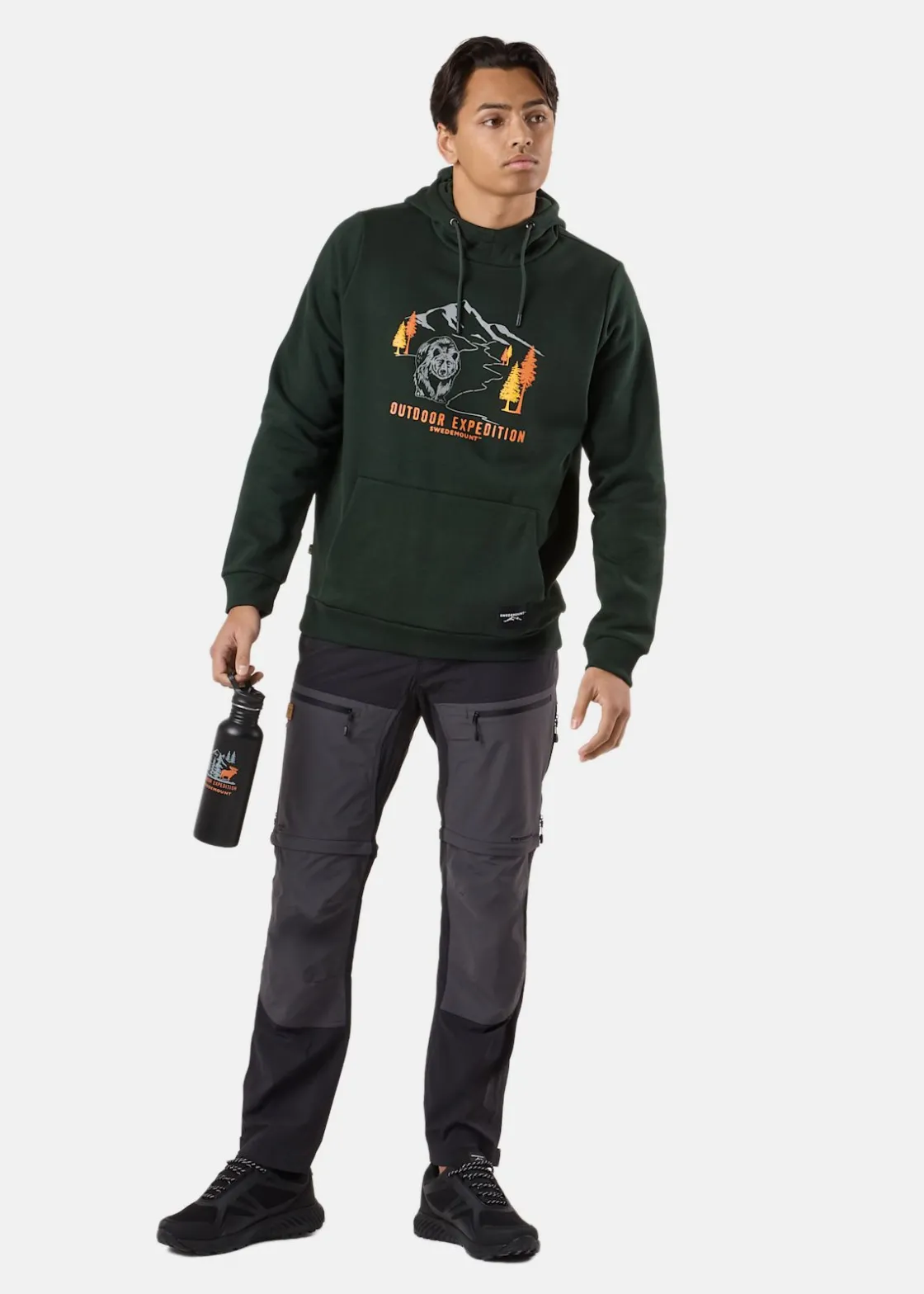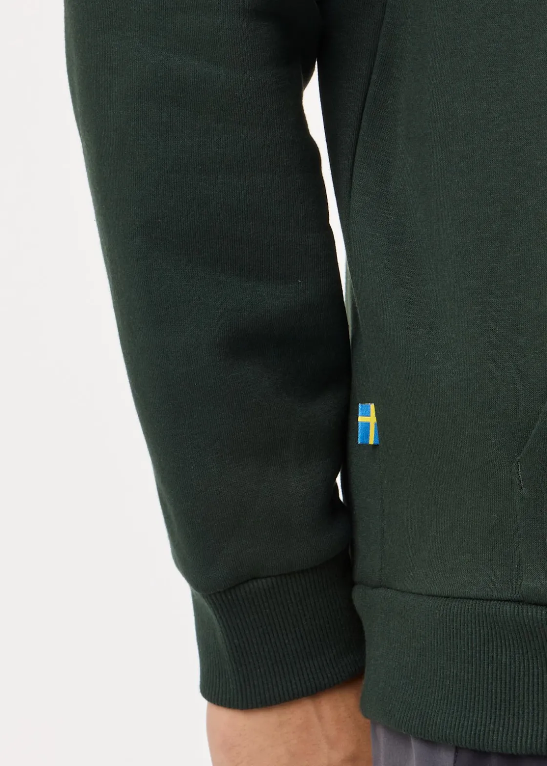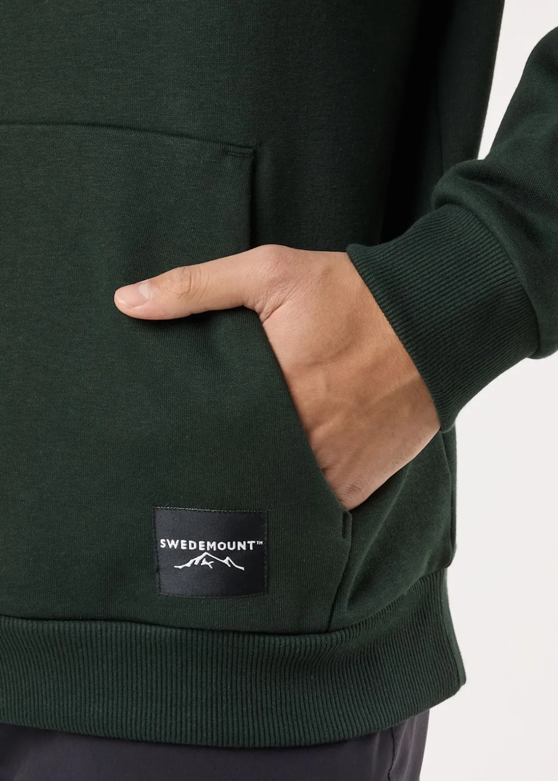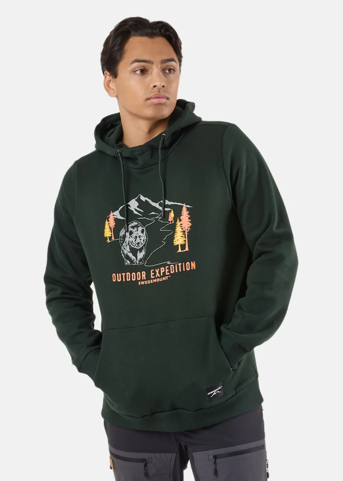 Mjuk tröja med justerbar huva och en stor ficka fram.