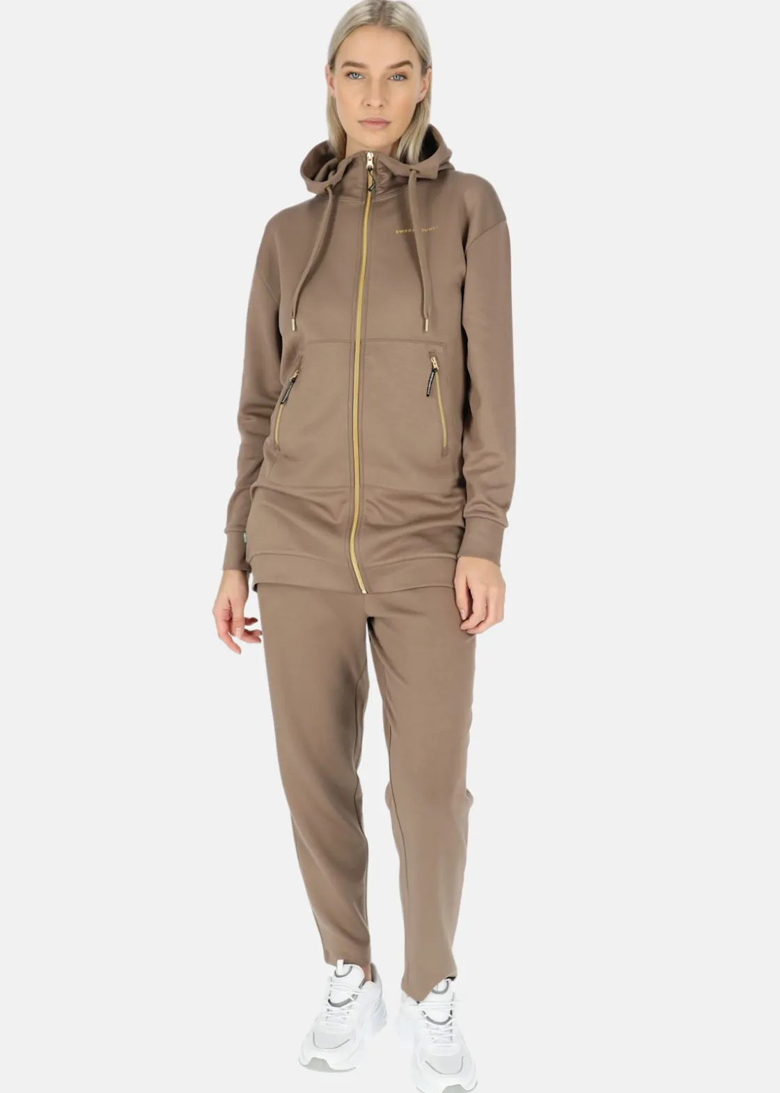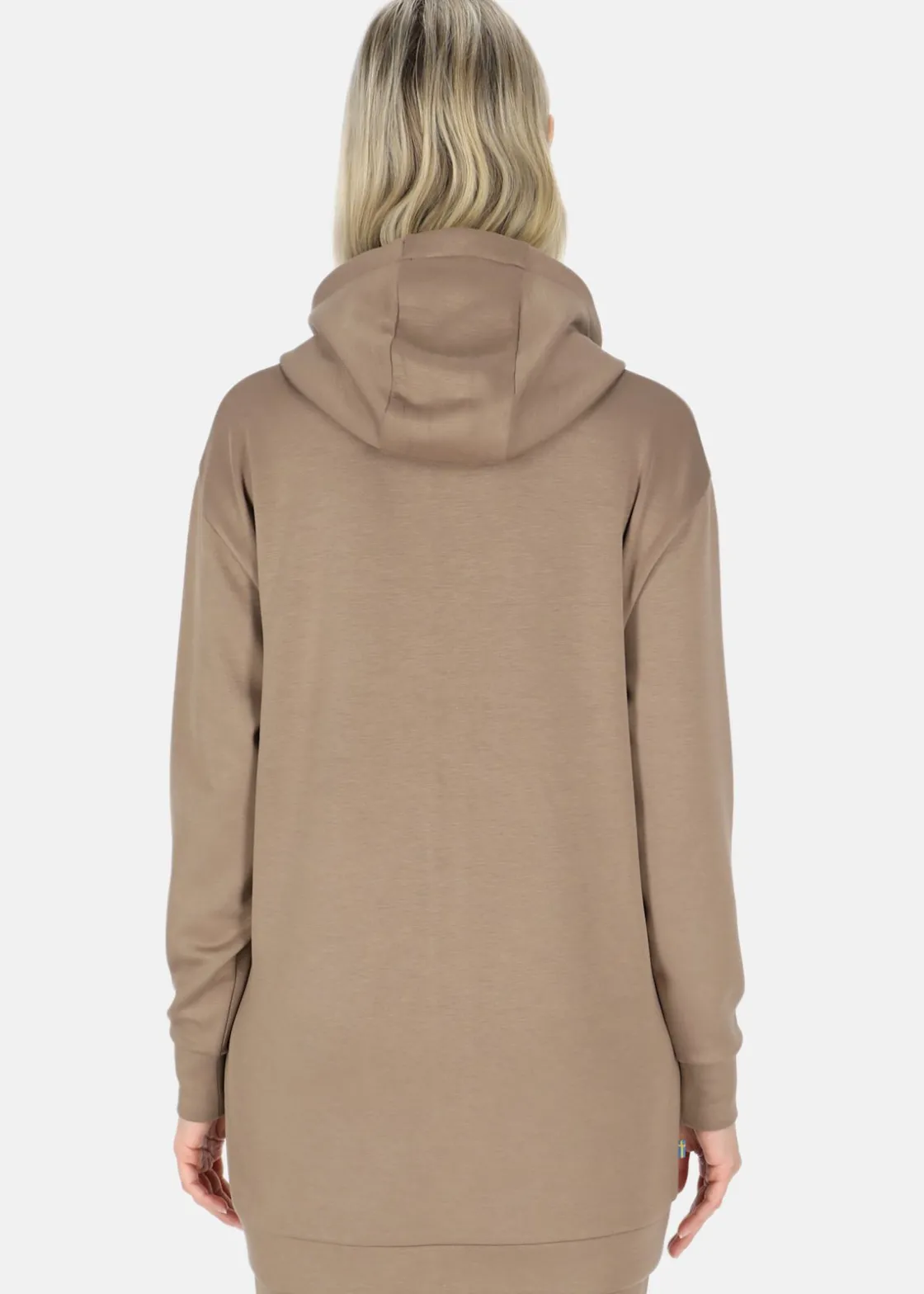 Lång luvtröja med dragkedja och fast, justerbar huva. Rymliga fickor med dragkedja. Stilren design perfekt för avslappnade dagar.