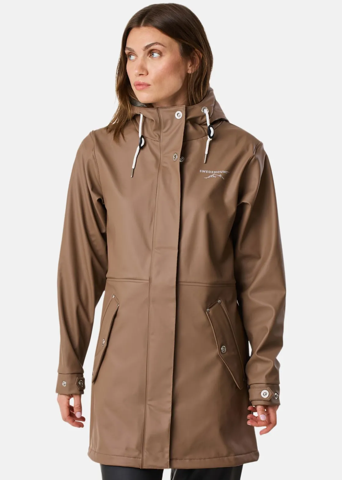 Denna regnjacka är en mångsidig följeslagare för regniga och kalla höstdagar, eftersom den kombinerar vattentäthet med värmande komfort. Den är utrustad med praktiska detaljer som robusta fickor med tryckknappar, en tvåvägsdragkedja och en fast, justerbar huva, vilket ger både funktionalitet och skydd mot regn och kyla. Dess reflekterande logotryck på bröstet och justerbara ärmslut med knappar ökar säkerheten och gör den till ett utmärkt val för oväntade regnskurar och kyliga höstdagar.