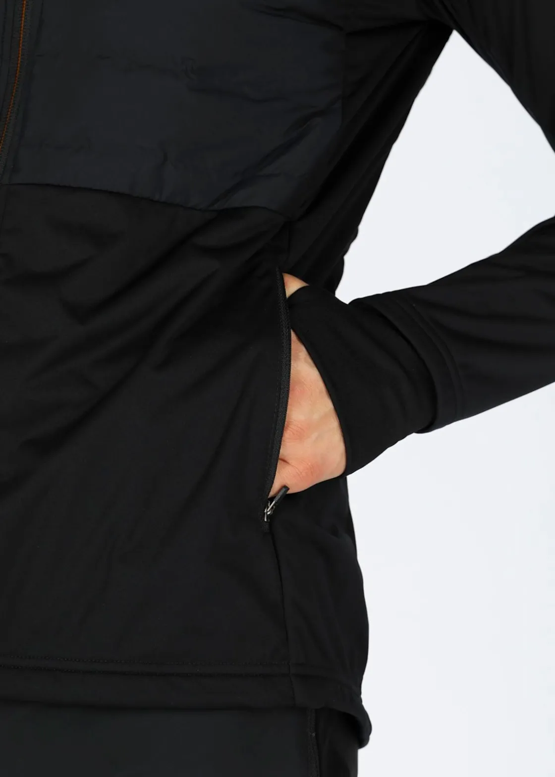 Nordic Hybrid Hooded är en hybridjacka från Swedemount. Tillverkad i vind- och vattenavvisande material håller den dig torr och skyddad under alla väderförhållanden. Jackans vadderade paneler ger extra värme och komfort, medan det stretchiga materialet ger dig god rörelsefrihet. Med två handfickor med dragkedja och en fast huva är den både praktisk och stilren. Den hellånga dragkedjan gör den enkel att ta på och av, och den höga kragen ger extra skydd mot kyla. Tumhål och justerbar nederfåll gör att du kan anpassa passformen efter dina egna behov. En perfekt jacka i längdspåret!