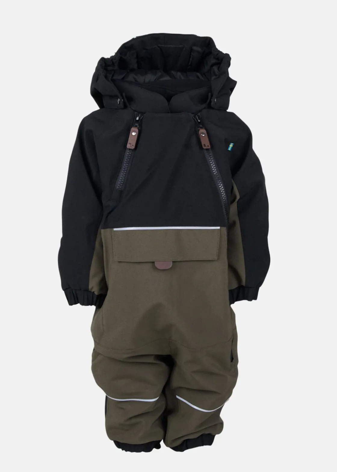 Overallen har både lång och kort frontdragkedja samt en smart ”två i en”-ficka på magen. Med sitt mjuka och stretchiga material, höga vattentäthet och goda andningsförmåga, blir den en pålitlig kompanjon för varierande väder. Dess praktiska nylonfoder möjliggör enkel lager-på-lager-användning. Overallen är både funktionell och tålig, förstärkningar i Cordura på knä och rumpa, reflexdetaljer, justerbara ärmslut, lycramuddar med tumhål samt en avtagbar huva. Med snölås, fotstrappar, massor med praktiska lösningar för att smidigt hantera påtagning av skor eller pjäxor.