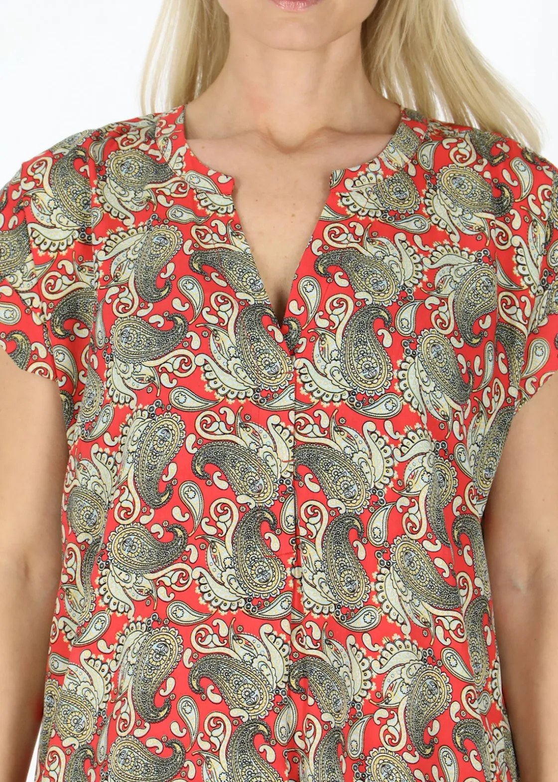 Klänning från Seaside i ett tunt och skönt material som gör att den får ett fint fall. Den har en avslappnad passform med v-ringning och kort ärm. Sidoslitsar och en rundad nederkant baktill som ger den här klänningen en snygg finish. Perfekt för varma dagar!