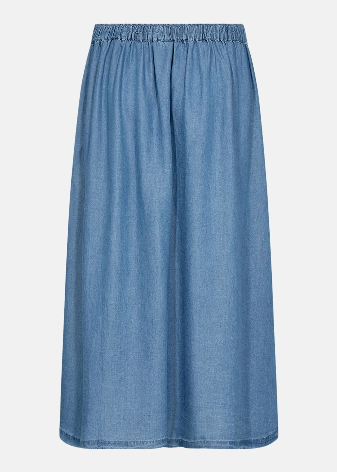 Kjolen är tillverkad av 100% Lyocell, vilket ger en mjuk och hållbar känsla. Den elastiska midjan säkerställer komfort hela dagen, medan den diskreta slitsen i sidan ger extra rörelsefrihet. Perfekt för både vardag och mer formella tillfällen, kan den enkelt stylas med olika toppar för att passa din personliga stil.