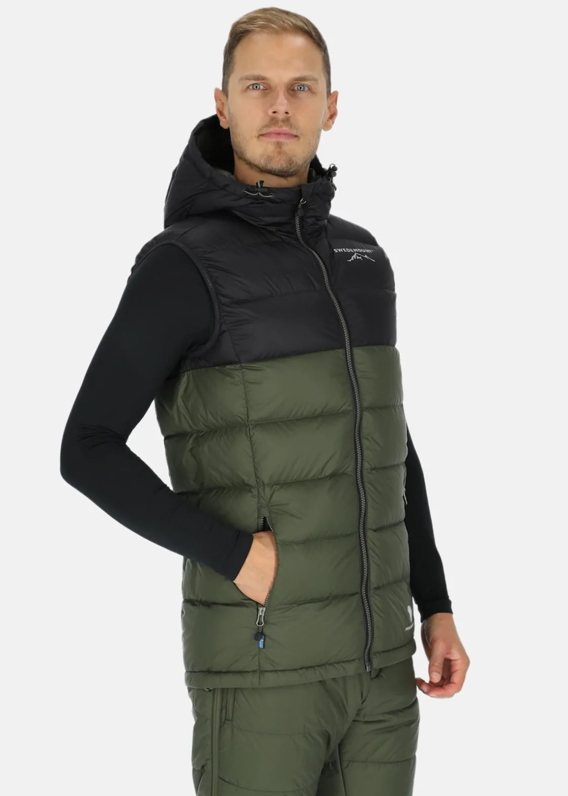 Östersund Down Vest från Swedemount är den ultimata värmande och skyddande västen för kalla och blåsiga dagar. Den är tillverkad i vind- och vattenavvisande material och har en justerbar huva och en hög krage för extra skydd mot elementen. Dragskon nedtill ger en perfekt passform och två handfickor med dragkedja ger extra praktiskt förvaringsutrymme. Reflexloggan på bröstet ger ökad synlighet i mörker. Med en fill power på 700 och RDC-certifierat dun kan du vara säker på att du får en högkvalitativ och hållbar produkt.